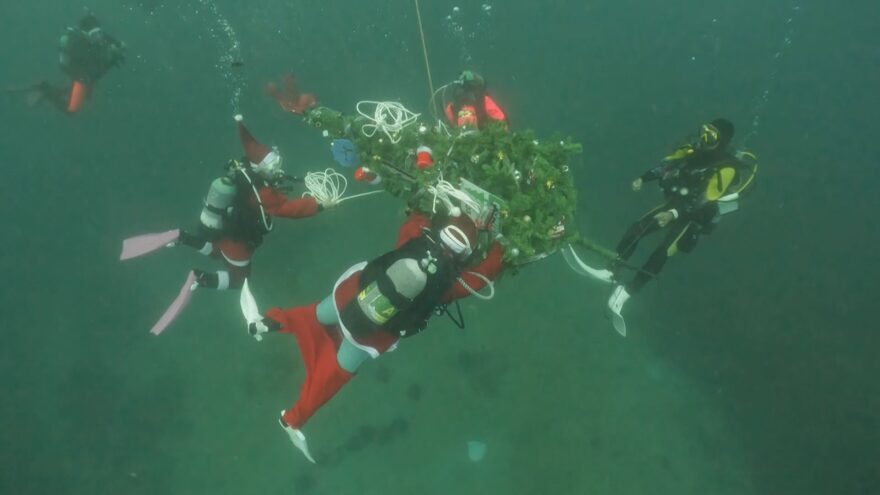 本州最南端に位置する串本町でダイバーたちに冬の海を楽しんでもらおうと、海中にクリスマスツリーが設置されました。
